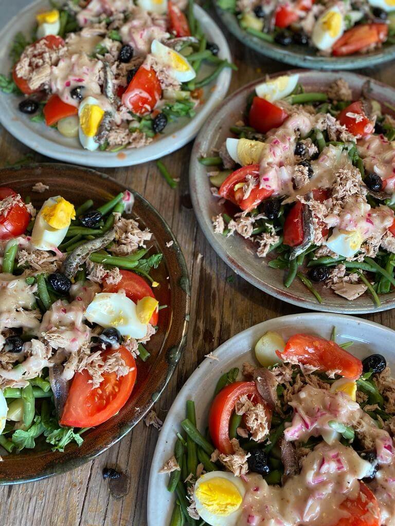 We eat the French way: a simple breakfast, a two-course hot lunch and a three-course dinner.