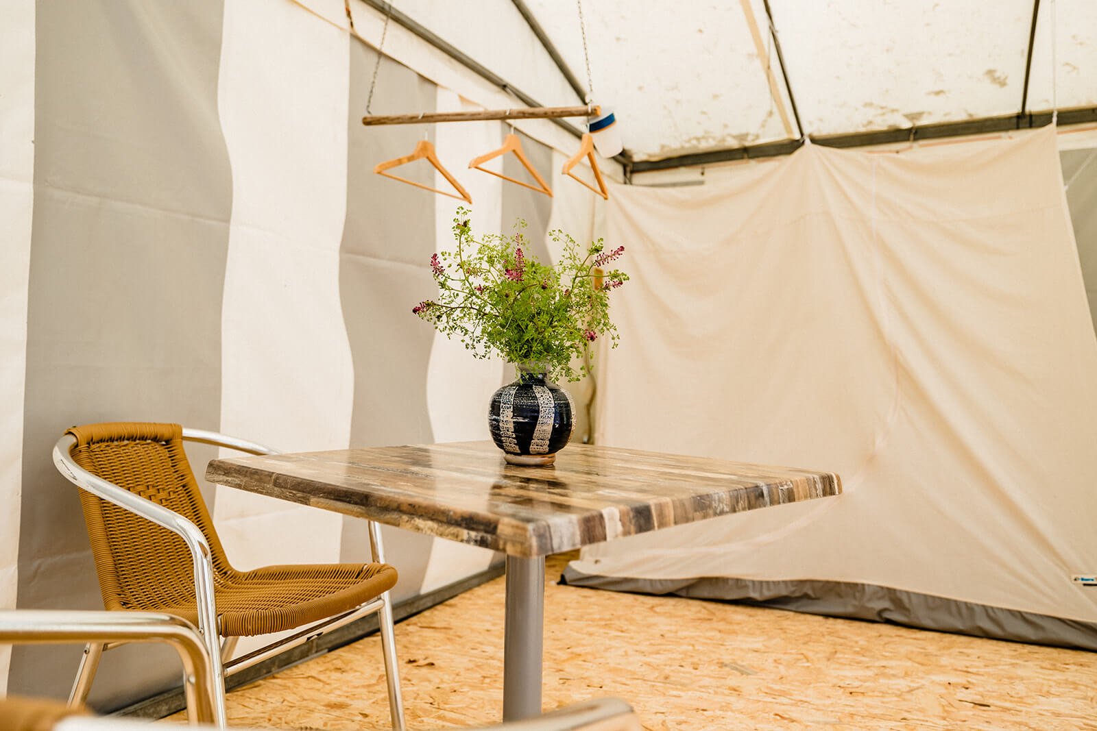 You can spend the night at La Céramique in your own tent or caravan, or for an additional charge of €160 per person per bed.